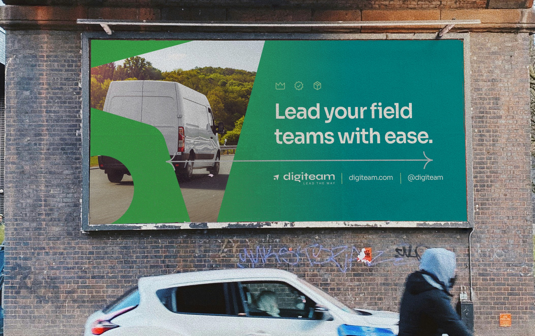 That idea became the backbone of everything: from the slogan Digiteam lead the way to the brand messages anchored in leadership and efficiency.