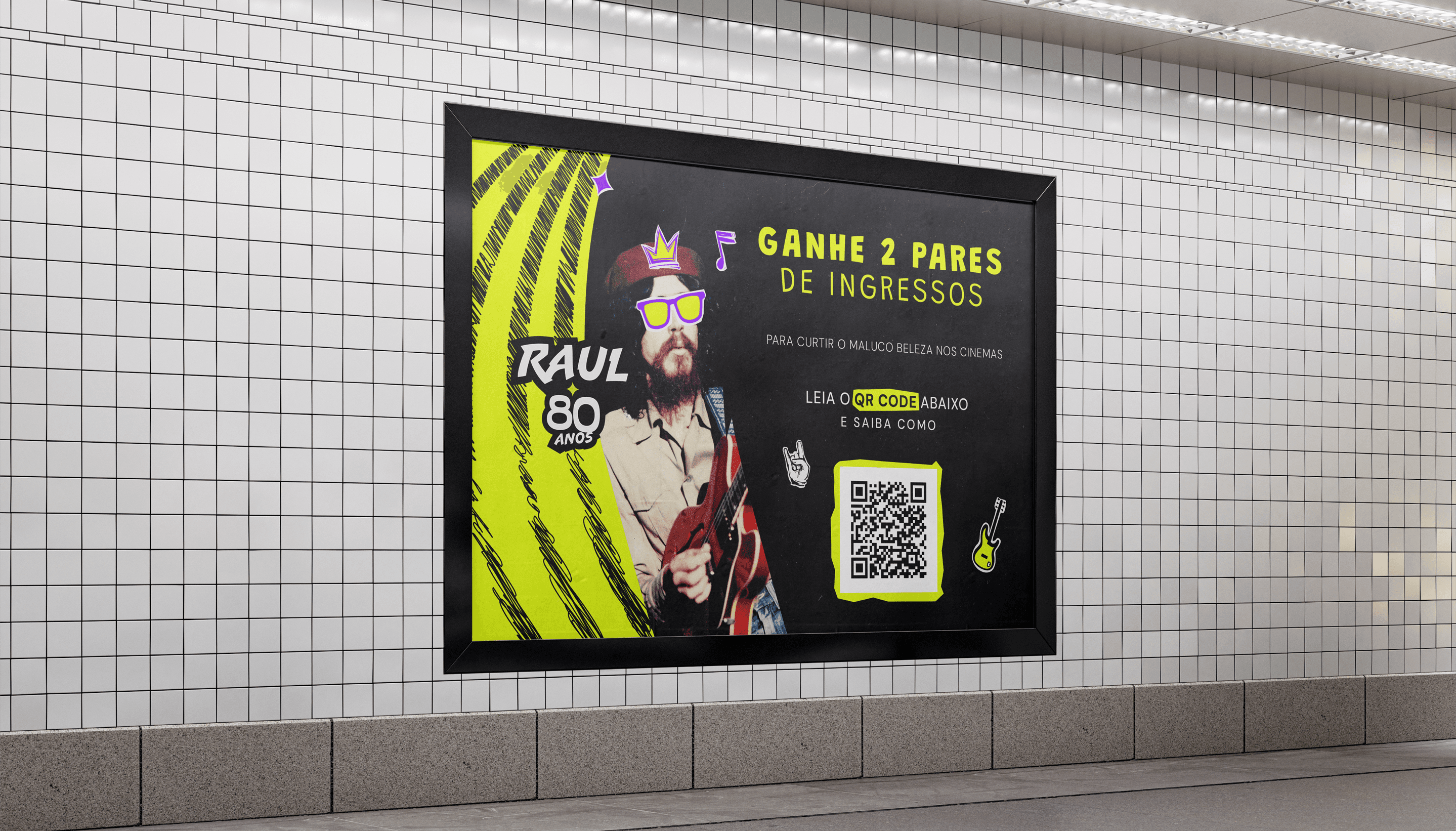 I was invited to create the visual identity for a project called Raul 80 Anos — a celebration of Raul Seixas, one of Brazil's most iconic rock stars. If he were alive today, he would be turning 80 years, and this project was born to honor his life and his lasting legacy in Brazilian music. The project was designed to unfold across multiple phases and moments. Last year, one of them was especially memorable: a concert held in the city where he was born, accompanied by a public festival that filled the surrounding square with energy, people, and music. *photos by Caio Lírio Play Raul!